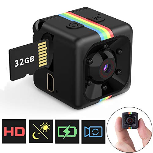 Mini Telecamera Spia Nascosta con Micro sd 32gb, FLYLINKTECH Full HD 1080P Microcamera Spia Interno/Esterno Rilevamento di Movimento Portatile Videocamera di Sorveglianza Video