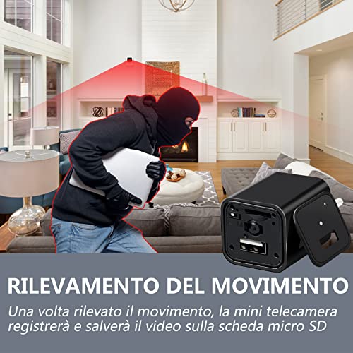 Telecamera Nascosta Spia, HD Microtelecamera Spia USB Caricatore, Mini Spy Cam Rilevamento del Movimento Videocamere di Sorveglianza per Casa Bambini