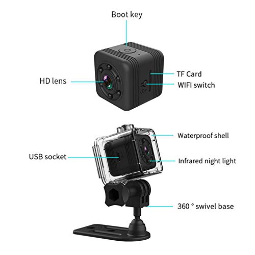 Mini telecamera nascosta senza fili, portatile, per foto e video, WiFi, con visione notturna, design impermeabile fino a 30 m, per uso in ambienti interni ed esterni (da connettere al wifi)