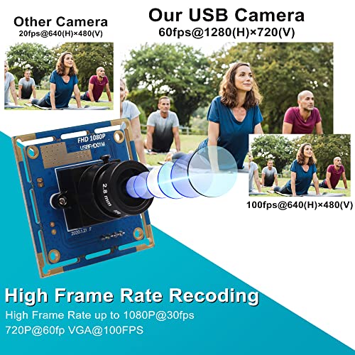 ELP Telecamera Web Full HD 2,8 mm obiettivo Webcam 1080P USB Camera Modulo USB Computer Webcam Plug and Play Web Cam Compatibile con Windows/Linux/Andorid USBFHD01M-L28