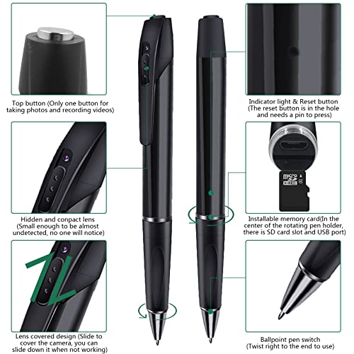【Telecamera Nascosta Penna】Una fotocamera A penna e di sorveglianza 2-in-1. A forma di penna, diapositiva per coprire la macchina fotografica, che è piccola, compatta ed elegante, nessuno si accorgerà che è una macchina fotografica e vi presterà attenzione.