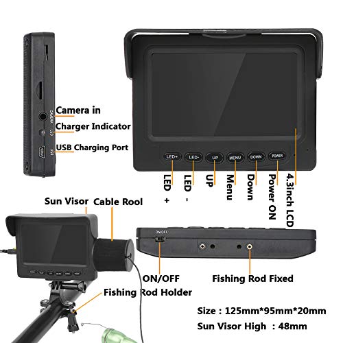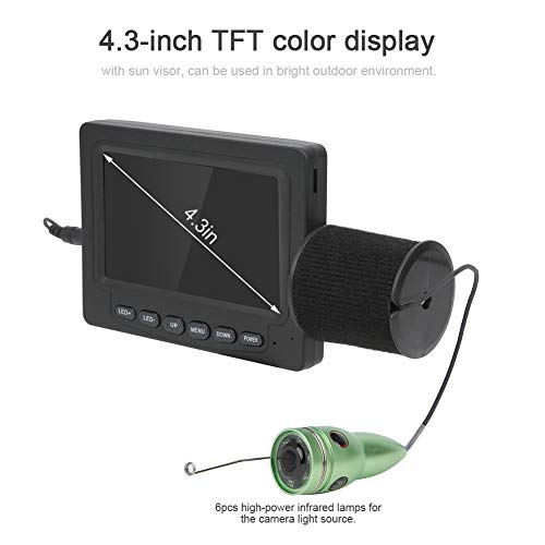 ¡¾Videocamera per la pesca subacquea¡¿ Display a colori TFT da 4,3 pollici con visiera parasole, utilizzabile in ambienti esterni luminosi. Lo schermo CCD a colori, la telecamera 1200TVL, l'alta definizione, forniscono un'immagine chiara. Distanza visibile (acqua limpida): ca. 1-3 m / 3,3-9,8 piedi.