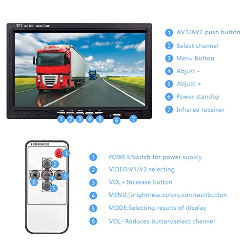 【Trasmissione del segnale stabile】 Display TFT LCD da 7 pollici (16: 9) per auto / veicolo / auto incolore: adottato dall'ultima generazione di chip del sensore di immagine, eccellente effetto cromatico. Immagine ad alta risoluzione e bassa potenza. Gamma di trasmissione 26-50 piedi (condizioni normali, nessuna interferenza di segnale), Strada aperta: portata fino a 40 piedi-100 piedi.