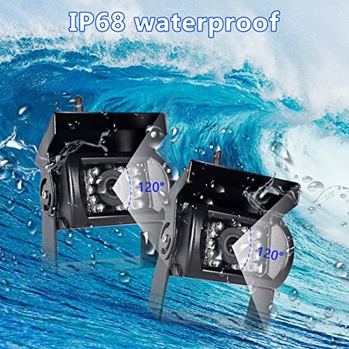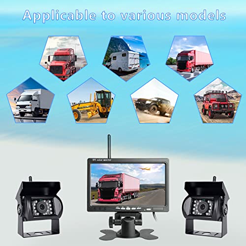 Kit Telecamera Per Retromarcia Wireless, Monitor LCD HD da 7" Con Antenna, 2 X Telecamera Posteriore Wireless, Impermeabile Versione Notturna,12-24 V telecamera retrovisore per camper, camper