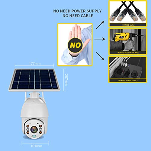 Telecamera PTZ senza fili a batteria solare 4G LTE, telecamera di sicurezza PTZ esterna con pannello solare per interni ed esterni, visione notturna a colori, rilevamento di movimento video