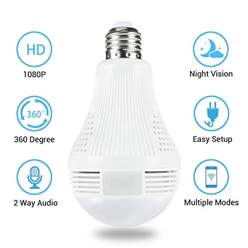 Ampio angolo di visione: ampio angolo di visione a 360 gradi, alta risoluzione 960P senza area cieca, applicabile a vari scenari di sicurezza, supporta 5 diverse modalità di visualizzazione e registrazione in loop nella scheda micro SD (fino a 128 GB).