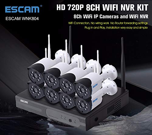 YA Telecamera di Sicurezza Wireless Cam 720P HD 8 canali NVR Kit con 8 IPC equipaggiati per la Tua casa o la Sicurezza Aziendale con Tecnologia E-Cloud