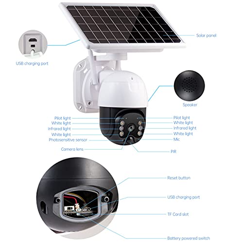 Batterie ricaricabili alimentate: batterie ricaricabili di grande capacità da 6 pezzi integrate, la telecamera di sicurezza può essere alimentata da batterie ricaricabili e pannello solare. Sono necessarie 8 ore per caricare la batteria al 99% completamente carica attraverso il pannello solare in silicio monocristallino ad alto tasso di conversione dell'energia con luce solare sufficiente.