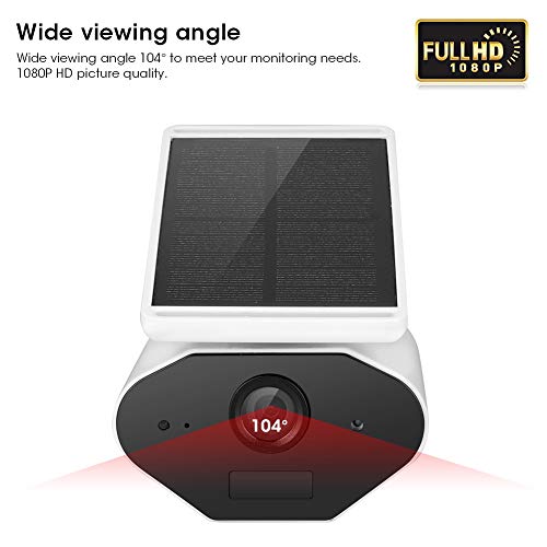 【Alimentazione solare e attivazione automatica】 La batteria ad alta capacità (integrata), alimentata a energia solare, il pannello solare sulla parte superiore della fotocamera può assorbire calore e luce e la converte in energia per la durata della batteria, può facilmente funzionare senza connessione energia. Basso consumo energetico, monitoraggio intelligente, attivazione automatica della videocamera quando gli oggetti si muovono e registrazione del monitoraggio, notifica al telefono cellular
