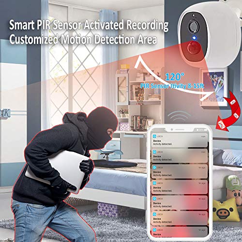 (1) 【Alimentazione a batteria e installazione semplice】: con la batteria ricaricabile da 5200 mAh, questa telecamera IP può funzionare da circa 1 a 3 mesi con un utilizzo normale (circa 5 minuti di registrazione ogni giorno). Con la telecamera di sorveglianza wireless con funzionamento a batteria, non è necessario posare alcun cavo ed è anche possibile evitare completamente di praticare fori attraverso una parete esterna.