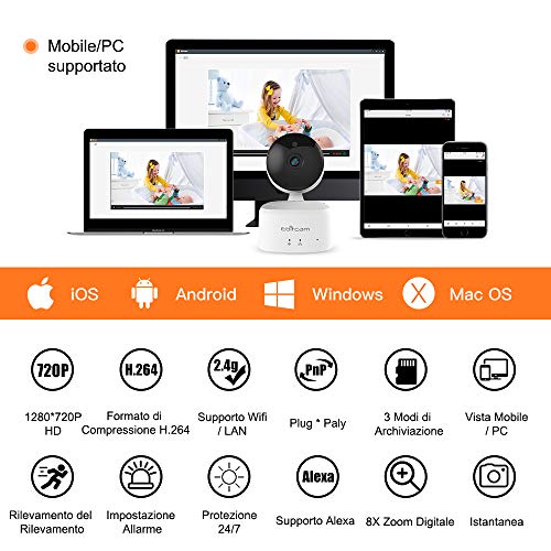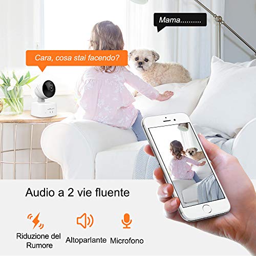Telecamera di Sorveglianza WiFi, Videocamera IP Interno Wireless con Visione Notturna, Audio Bidirezionale, Notifiche in Sensore di Movimento Per Pet/Elderly/Baby e Domestica Monitor, HD 720P