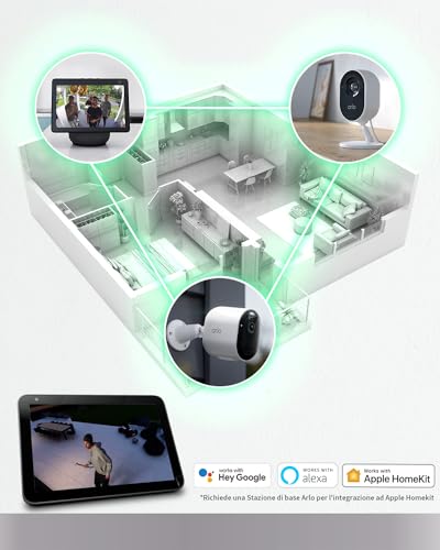 Senza abbonamento - Le videocamere Arlo offrono streaming live, avvisi di movimento e conversazione bidirezionale direttamente sul tuo cellulare. Associato a una stazione base, è possibile anche l'archiviazione locale.