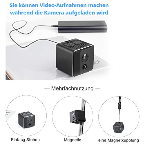 Mini telecamera wireless piccola e robusta, questa fotocamera ha un corpo in lega, solo un piccolo bit di una dimensione quadrata. Con longitudinale per appendere intorno al collo. Registrazione video e foto taking. Lente grandangolare wireless a 120 gradi. Ottima gadget e fotocamera per la sicurezza domestica. Luce invisibile durante il funzionamento. Visione notturna e movimento attivato. Innovativo supporto girevole per 360 gradi. Magnete forte sul retro. La fotocamera deve essere utilizzata con scheda micro SD (scheda micro SD non inclusa).