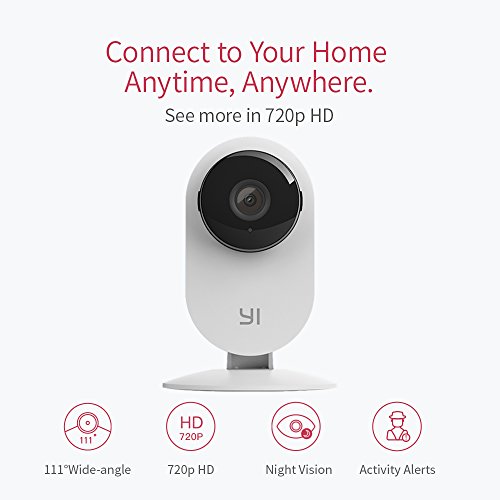 Yi Home app: Yi Home app per Android, iOS e PC di accompagnamento per il rilevamento del movimento notifiche, Live View e telecomando - Contenuto della confezione: 1 x Yi 720p telecamera di sorveglianza, 1 x USB caricatore da muro, 1 x cavo micro USB, 1 x istruzioni
