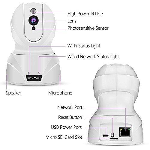 Telecamera WiFi YATWIN Telecamera IP 1080P Camera di Sorveglianza Videocamera per la Sicurezza Domestica, Visione Notturna, Supporto PTZ, Rilevatore Movimenti, 2 Way Audio con iOS e Android APP (Bianco)