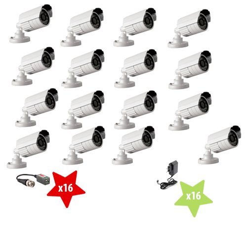 CONTENUTO CONFEZIONE N°16 Telecamera Led IR - N°16 Staffa integrata. N°16 Alimentatori - N°16 VIDEO BALUN