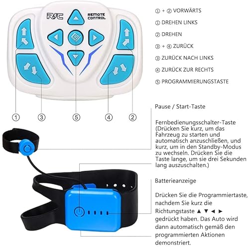 Due modalità di controllo: auto giocattolo con telecomando normale e telecomando con sensore gesto. Usa il telecomando dell'orologio per cambiare i gesti e controllare facilmente l'auto acrobatica. In questo modo è possibile apprendere facilmente le capacità di rotazione a 360°.