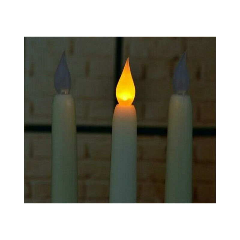 Remote controlled battery operated senza fiamma led cono lampada della candela candeliere 28 centimetri (H)-Ambra Questo elenco è per un pacchetto di 11 pollici a LED Flickering Taper Candele, richiede 2 batterie AAA (non incluso e rimarrà acceso per circa 300 ore prima di avere per sostituire le batterie. Fatto di un materiale plastico che realisticamente resymbols cera di candela;