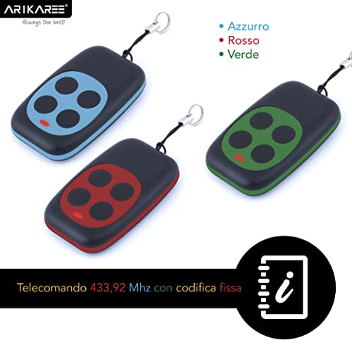 Telecomando Cancello Automatico Universale Con Frequenza 433,92 Mhz Ampio Raggio. Elegante Programmabile A Codifica Fissa Batteria 3V Inclusa (Set 3 Pz Colorati)