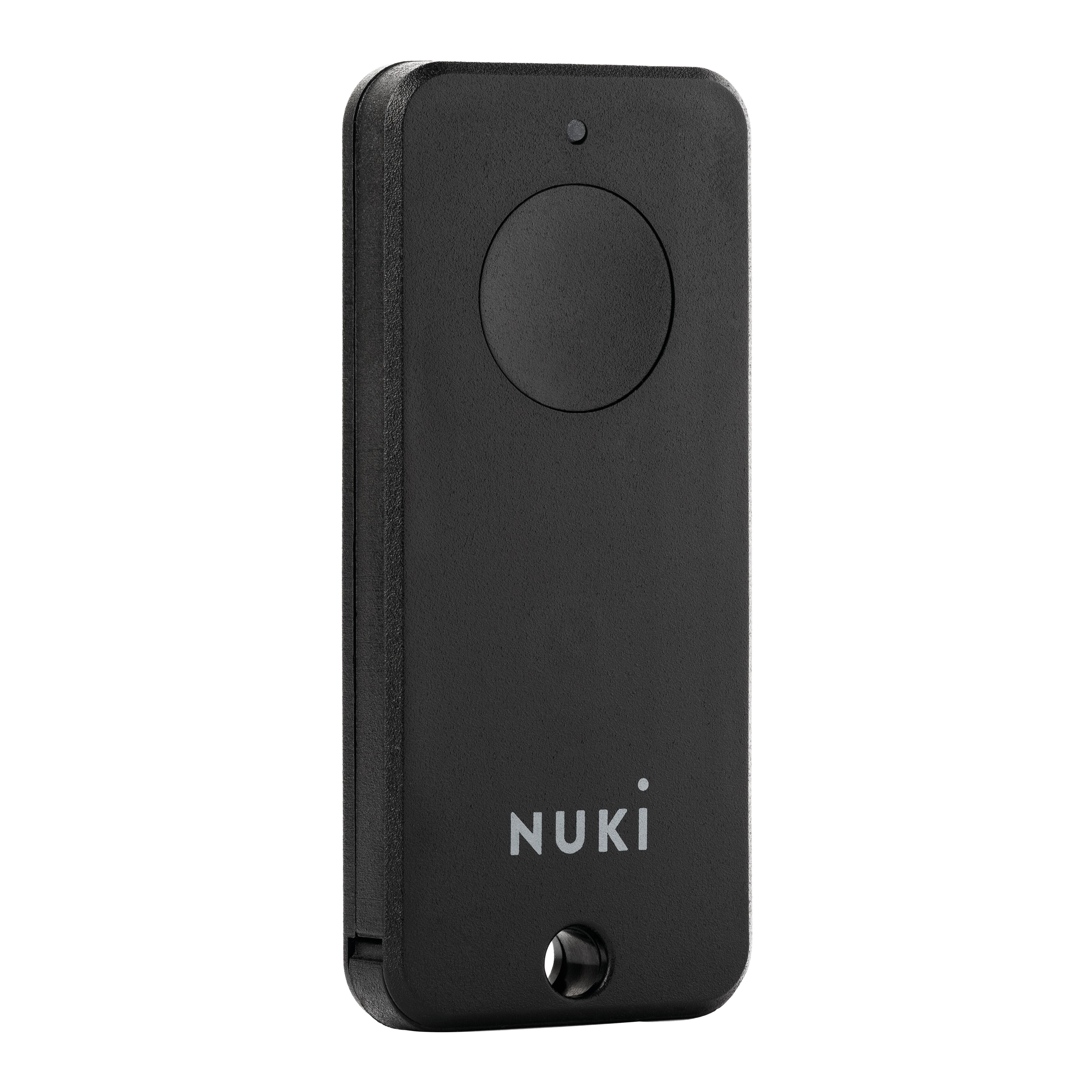 Con il piccolo portachiavi Bluetooth Nuki Fob puoi bloccare o sbloccare la tua porta anche senza smartphone. L'estensione perfetta per la Nuki Smart Lock Apri e chiudi la tua porta di casa premendo un tasto In caso di smarrimento può essere disattivato in ogni momento Ideale per bambini e anziani. Ottimo per bambini e anziani Il Nuki Fob è impermeabile e a prova d'urto e può essere disattivato in qualsiasi momento. Grazie al facile utilizzo, è un pratico sostituto delle chiavi anche per bambini e anziani senza smartphone.. Addio chiavi di riserva. La tua babysitter, domestica o dog sitter ha bisogno di entrare a casa tua? Con il Nuki Fob anche i fornitori di servizi potranno accedere a casa tua comodamente e in maniera controllata - in modo permanente, ricorrente o per una volta sola.. Telecomando Bluetooth Come vero e proprio sostituto delle chiavi, il Nuki Fob blocca o sblocca la tua porta premendo un pulsante. Un telecomando per tutti coloro che vogliono semplificarsi la vita.. Il compagno ideale . A volte senti il bisogno di stare fuori in mezzo alla natura senza il fastidio di portare con te lo smartphone? Il Nuki Fob è il tuo compagno silenzioso per momenti preziosi, poiché grazie alla sua dimensione ridotta trova posto in ogni tasca.. Multifunzionale. Il Nuki Fob è un tuttofare e può essere collegato a massimo 100 Smart Lock.