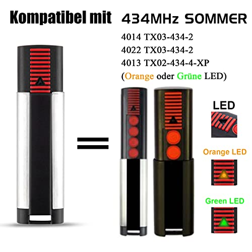 Telecomando per porta garage compatibile con 434.42Mhz Sommer 4014 TX03-434-2 | 4022 TX03-434-2 | 4013 TX02-434-4-XP Trasmettitore portatile con LED verde e LED arancione 2 Pack