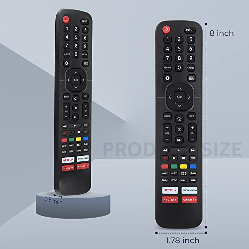 Leyf Telecomando di ricambio Hisense - compatibile con molti modelli come EN2X30H/ EN2D27/ ERF6A64/EN-33926A - per Smart LED QLED UHD TV Netflix, Prime Video, YouTube, Rakuten TV con chiavi
