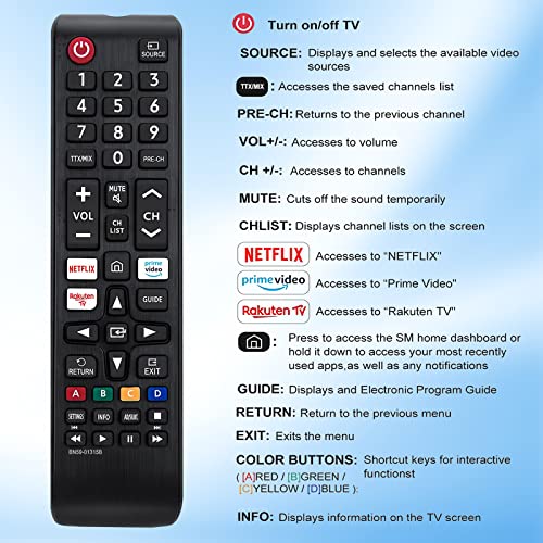 Telecomando Samsung Universal Netflix, Prime Video Rakuten TV Tasto applicabile a Samsung Smart TV LCD UHD QLED 4K HDR TV