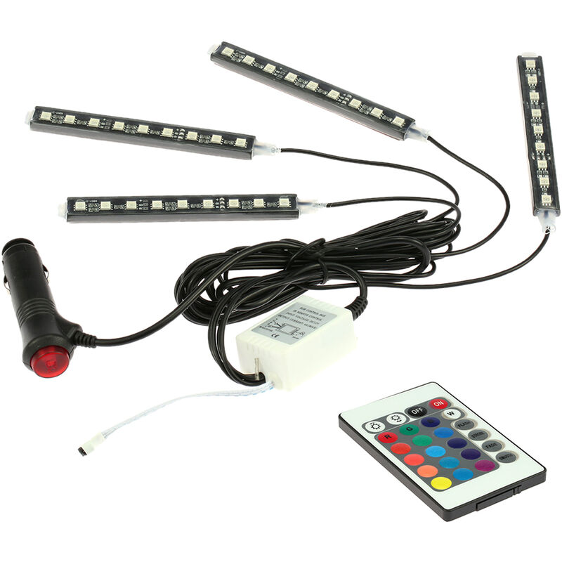 Caratteristiche: 1. 7 colori RGB auto kit luci interne con telecomando senza fili. 2. Funzione Remote: on / off, controllo luminosità, colore del cambiamento, il cambiamento lampeggiante modello. 3. 4 luci bar atmosfera, ideale per la decorazione d'interni auto / auto, che vi offre un ambiente esotico e romantico. 4. Kit luce della decorazione completo, compreso adattatore per accendisigari. colpetto adesivo 5. Fare doppio lato per una facile installazione. È possibile installare su qualsiasi luogo desideri. 6. Il design semplice interruttore ON-OFF sul accendisigari. 7. Può essere utilizzato sulla vettura pavimento interno o un trattino. Specifiche tecniche: Tensione: 12V DC Light Bar Quantità: 4 Quantità del LED: 36 (in totale) Colore chiaro: variopinto Light Bar Dimensione: 12 * 1.5cm Lunghezza cavo: ca.. 2.21m formato del pacchetto: 17 * 15 * 3cm / 6.7 * 6 * 1.2in Peso del pacchetto: 188g / 6,6 once Lista del pacchetto: 1 * Car Interior Light Kit atmosfera 1 * telecomando senza
