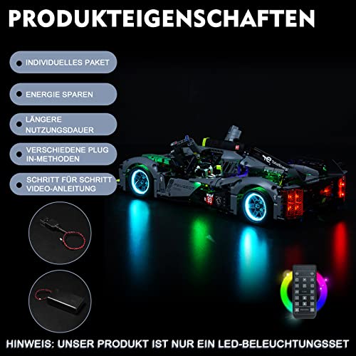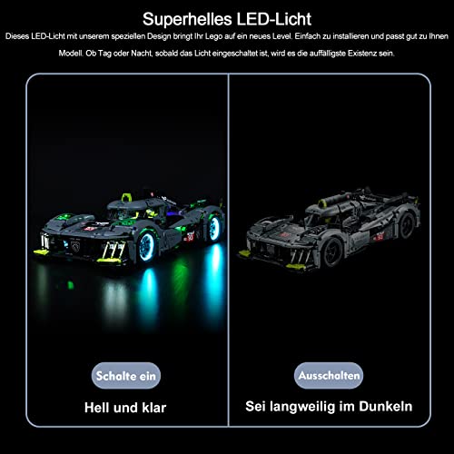 Kit luce telecomando per Lego Technic Peugeot 9X8 24H Le Mans Hybrid Hypercar 42156 kit auto da corsa (non modello Lego), set di illuminazione a LED per Le Mans Hybrid Hypercar luci giocattolo