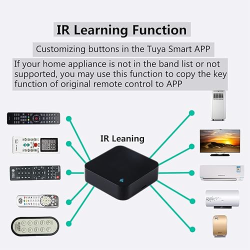 ✅ Con questo telecomando IR universale, puoi utilizzare il tuo smartphone per controllare elettrodomestici, come TV, aria condizionata, ventilatore, DVD, ecc. Compatibile con la maggior parte delle marche. Per maggiori dettagli, consulta l'elenco dei marchi compatibili nell'app. Inoltre, ha una funzione di apprendimento, consente di copiare la funzione chiave del telecomando originale nell'applicazione. Nota: NON è compatibile con gli elettrodomestici che utilizzano telecomando RF o BLUETOOTH.