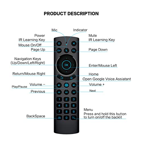 Telecomando Wireless Intelligente, Telecomando USB con Rilevamento Vocale Wireless Mouse Retroilluminato con Apprendimento IR per Nvidia Shield, PC, Proiettore, Smart TV, Android TV Box