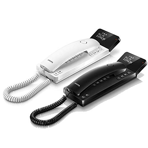 I telefoni con cavo non emettono alcun tipo di radiazione nociva, poiché la base e il microfono sono collegati con un cavo a spirale..I telefoni con cavo non dipendono dalla fonte di alimentazione della presa di corrente, poiché la potenza necessaria per il suo funzionamento proviene dalla linea telefonica. Questo rende i telefoni cablati una delle opzioni di comunicazione più affidabili, soprattutto in caso di interruzioni di corrente. Con il cavo a spirale che collega il ricevitore alla base, puoi sempre trovare il tuo telefono in qualsiasi momento. Goditi lunghe conversazioni, senza problemi e senza preoccupazioni, in qualsiasi momento..Con la modalità vivavoce puoi ascoltare la persona che ti chiama attraverso un altoparlante integrato, che ti permetterà di parlare senza dover tenere il telefono accanto all'orecchio. Questo è particolarmente utile se si desidera condividere una chiamata con più persone o semplicemente eseguire altre attività. Schermo invertito in bianco su nero da 7,cm (2,75") ad alto contrasto. Microtelefono comodo e leggero per chiamate più lunghe. Si può posizionare su un tavolo o montato a parete