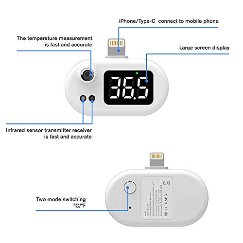 ▲ Misurazione Accurata Facile da Usare - Sensore a termopila intelligente integrato può essere collegato al telefono cellulare per misurare rapidamente in un secondo. Lo schermo LCD mostra chiaramente il grado. Avvio rapido, senza ritardi, senza aspettare, plug and play, nessuna batteria, nessuna necessità di caricare
