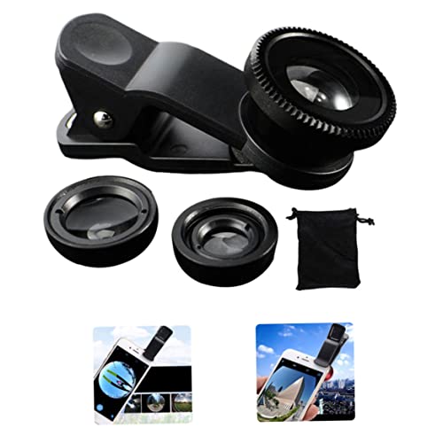 Telefono Lenti a Pesce 3in1 Angoli Larghi Macro Lenti Macro a Clip-on Universal Lente Nera, Lenti Per Telefoni Cellulari, Lenti Telefoniche a Fisheye, Lenti Macro Fisheye