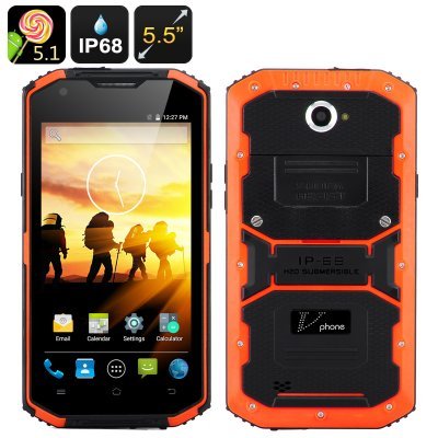 V telefono X3 Smartphone Rugged - 5,5 pollici HD schermo, Android 5.1, IP68, Dual SIM, tasto SOS, torcia LED, Android 5.1 (aran