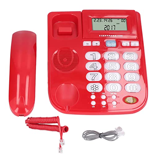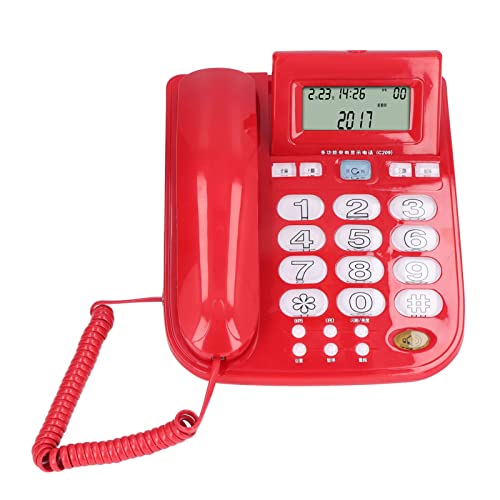 Telefono Standard con Cavo C209, Telefono Fisso per Anziani Rosso con Display LCD, Composizione a un Tasto, Tasto Grande, Chiamate in Vivavoce, Telefoni da Tavolo con Cavo Telefono per Hotel per Scuol