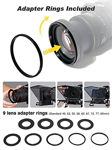 Teleprompter, Desview T2 Autocue per iPad Tablet Smartphone con Telecomando e Anelli Adattatori per Lenti 49, 52, 55, 58, 62, 67, 72, 77, 82 mm, Teleprompter-Smartphone-Tablet-DSLR-Fotocamera