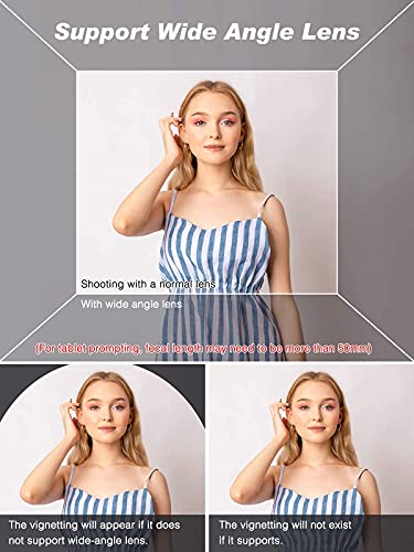 [Leggero e portatile] Supporta la registrazione con obiettivi grandangolari maggiori di 40 mm, fornendo una visione più ampia senza vignettatura. (Per le indicazioni su tablet, potrebbe essere necessario che la lunghezza focale sia maggiore di 50 mm.) Le coperture anteriore e posteriore danno una doppia protezione al vetro, antipolvere, antigraffio e anticollisione. Il teleprompter pesa solo 340 g, è leggero e portatile