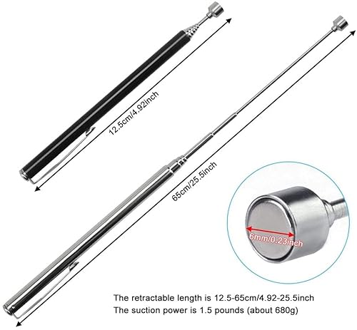 Dimensioni retrattili: la pinza magnetica retrattile può essere retratta da 4,92 pollici / 12,5 cm a 25,59 pollici / 65 cm. È facile da raggiungere. In luoghi difficili da raggiungere, monta la testa negli spazi più piccoli, soprattutto negli interni stretti, puoi anche contenere piccoli oggetti.