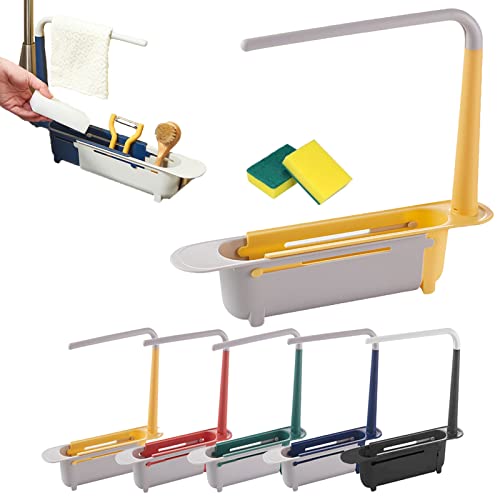 Telescopic 2-In-1 Sink Storage Rack Holder, Telescoping Sink Storage Rack,Updated Adjustable Sink Storage Rack, Sponge Holder Over Sink Expandable Storage Drain Basket Rack Sink Organizer (Yellow)
