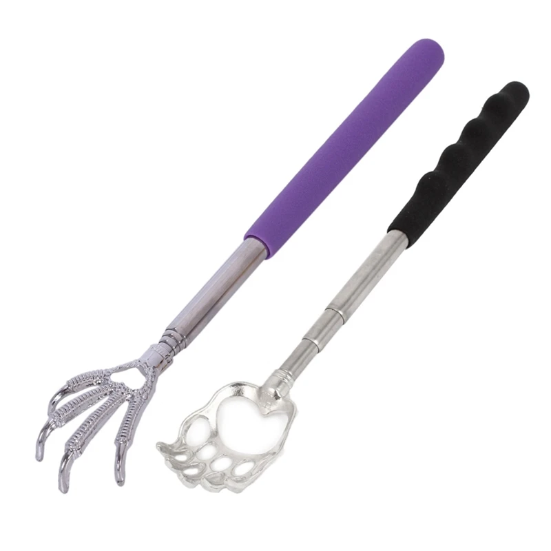 2Pcs Bear Claw Telescopic Massage Back Scratcher 58Cm - Ran Color & Silver + Black