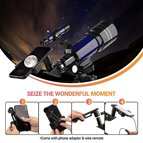Telescopio astronomico AZ da 70 mm / 300 mm per principianti, bambini, studenti, telescopio da viaggio portatile con adattatore telefonico, telecomando a filo