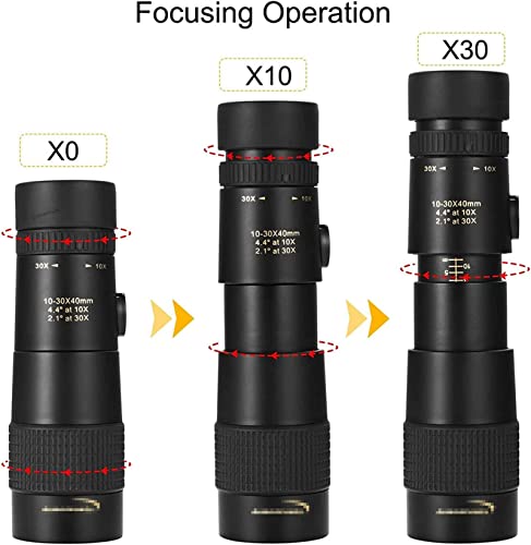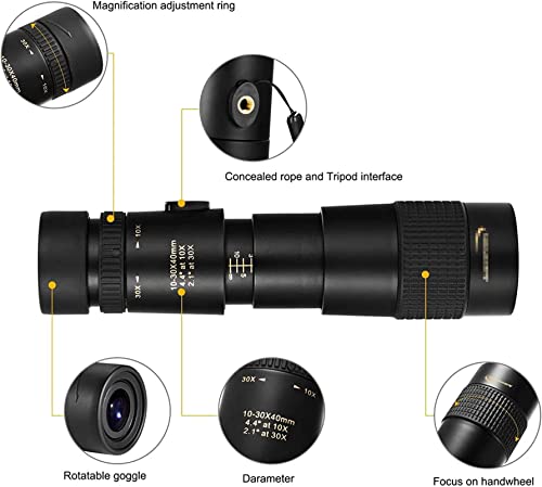 [Ingrandimento elevato 10-30x40] Aggiorna l'ingrandimento da 10X a 30X per offrire ai tuoi occhi una scena più ampia, più chiara e luminosa. Regola l'ingrandimento di questo monoculare zoom in base alle tue esigenze, ti darà fedeltà visiva e ti permetterà di vedere il meraviglioso mondo.
