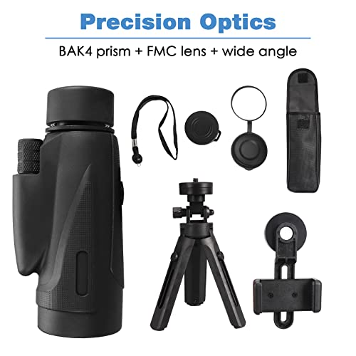 Telescopio Monoculare, LYCXAMES 12x50 HD BAK4 Canocchiale Monocoli Impermeabile Monocolo Prisma FMC Monocular con Adattatore e Treppiede per Bird Watching, La Caccia, Il Campeggio, Le Escursioni