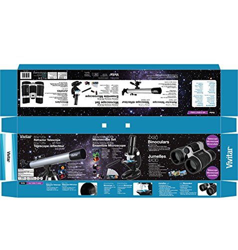 Telescopio Rifrattore 60x / 120x, Microscopio Set con accessori, 4x30 Binocolo per i capretti / bambini Vivitar TEL-MIC40 Kit Astronomia (Nero)