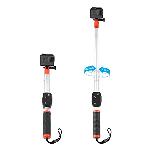 Modello trasparente: Il suo colore brillante lo renderà facile da individuare e il fatto che sia trasparente e cavo all'interno, per farlo galleggiare in acqua, lo rende apparentemente invisibile in foto, ideale per catturare qualsiasi angolazione stabile mentre fai snorkeling, nuoto, attività subacquea o altri sport acquatici e la fotocamera può essere facilmente trovata quando galleggia nell'acqua.
