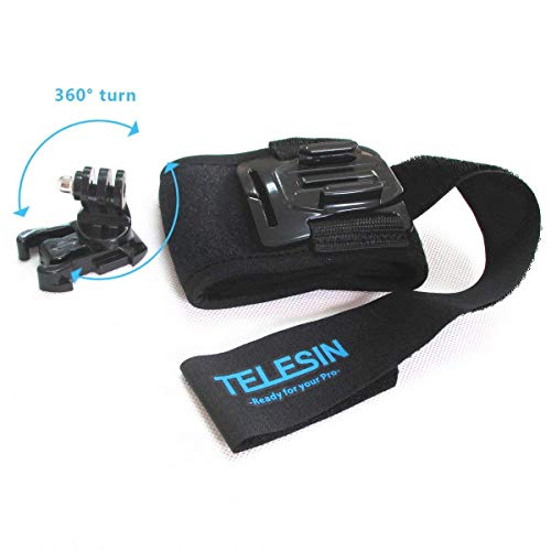 TELESIN 360 Gradi Rotatorio Cinturino da Braccio Polso Cinturino a Mano con Supporto Rotazione a J-Gancio per GoPro Hero 7 Hero 6 5 4 3 Session, Polaroid, Xiaomi Yi 4K LITE MIJIA AccessorI