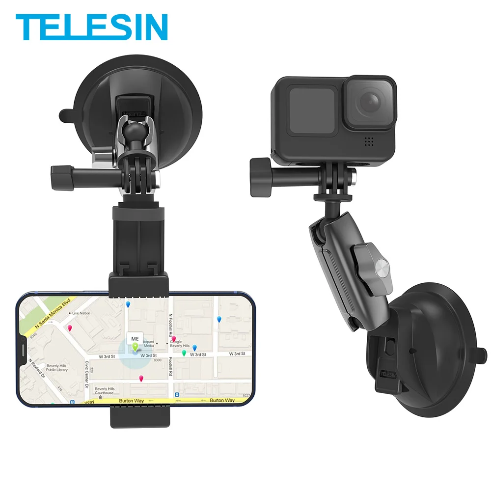 TELESIN Car Phone Holder Suction Cup 360° Adjustable Universal 1/4 Standard Adapter For GoPro Insta360 Osmo Action SJCAM Camera