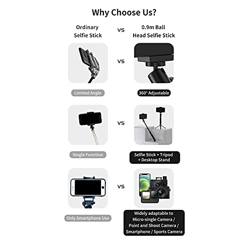 ✅Cosa ottieni?: Riceverai questi prodotti: 1x stick per selfie da 0,9 m con testa a sfera rotante