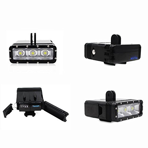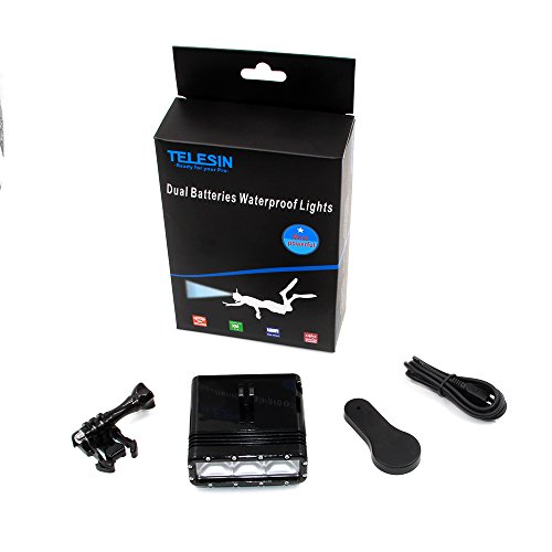 Telesin, luce subacquea impermeabile Superpower doppia batteria ricaricabile subacquea dimmerabile LED Fill Night Light Mount kit per GoPro Hero4 Session, 4,3+, 3, SJ (tipo 2)